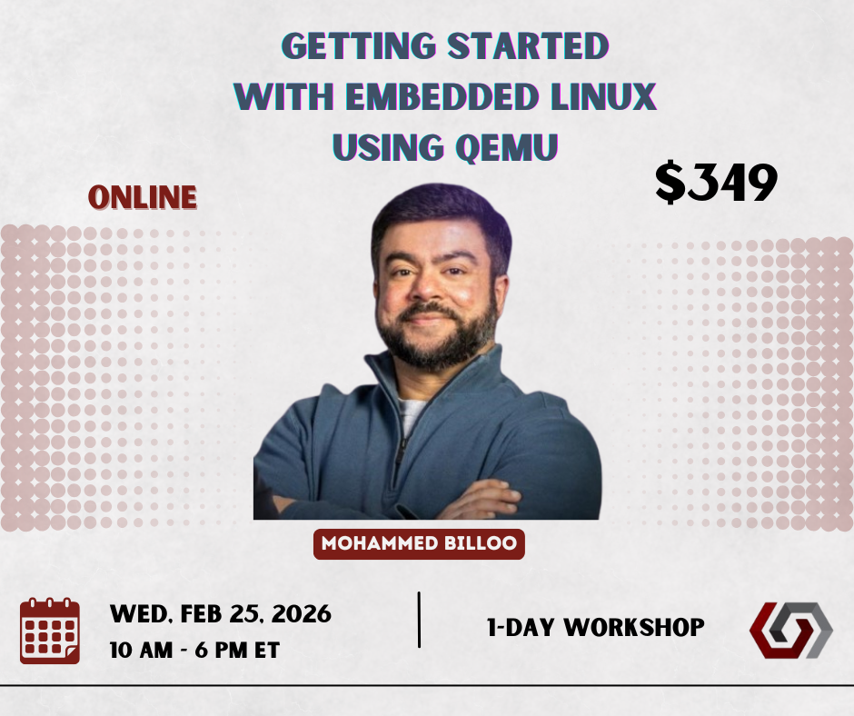 Learn embedded Linux development without buying hardware. This hands-on 1-day workshop takes you from boot to application using QEMU as your development platform. You'll understand how embedded Linux systems are structured, configure and customize U-Boot, build and extend the Linux kernel with out-of-tree modules, create a root filesystem, and debug applications with GDB. Three labs reinforce each stage.